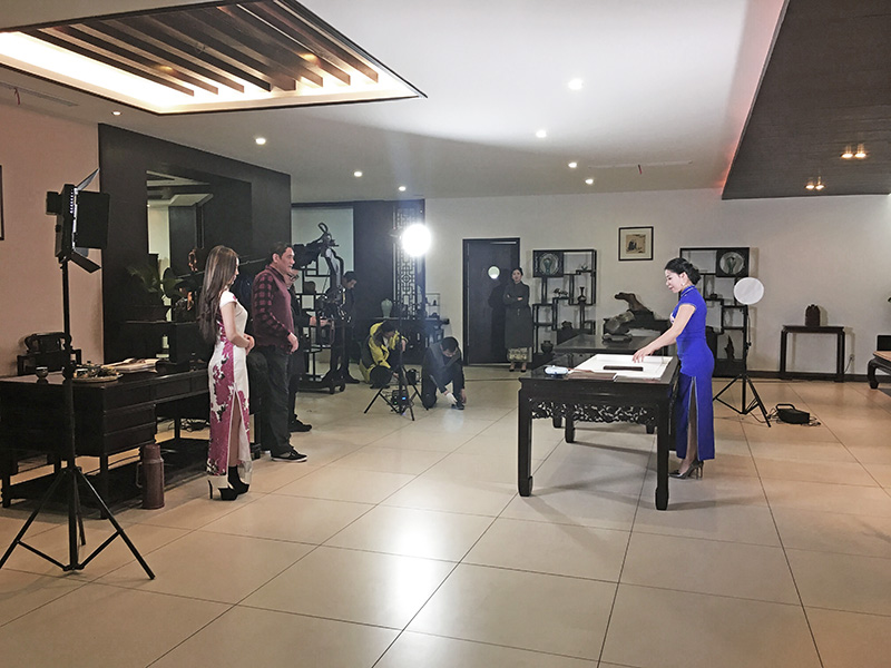 市电视台鲁老师携旗袍团队来公司取景拍摄。